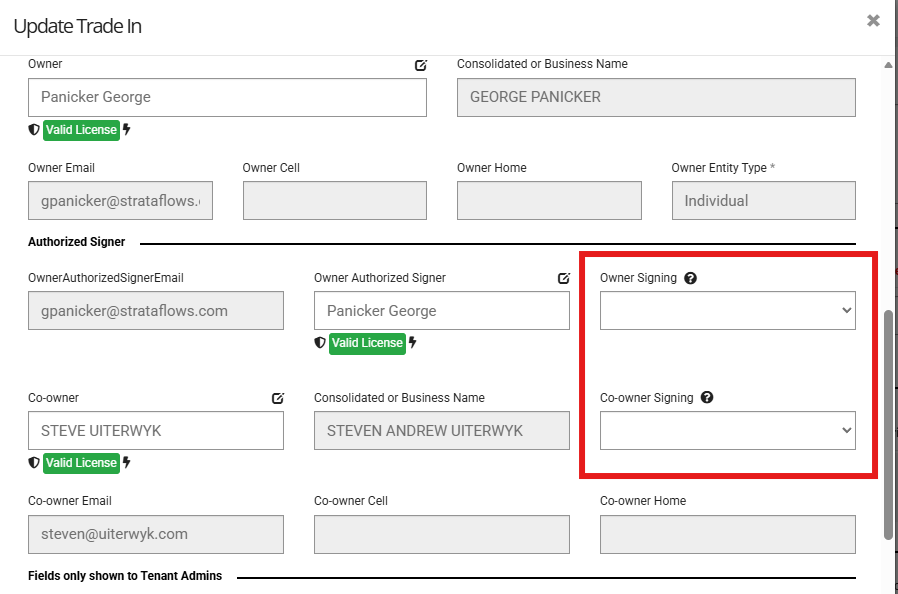 - Trade-In form enhancements to Owner, Co-Owner, and Lender data