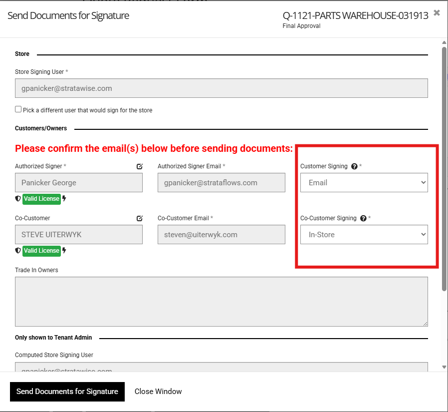 - Signed documents now include a complete audit trail (example: Q-0911-PARTS WAREHOUSE-027557).
